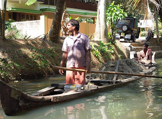 | Passeio em pequeno barco pelos estreitos canais de Kerala |
